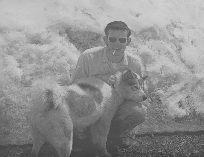 - Dave Houston crouched on top of an iceberg - May 1960.