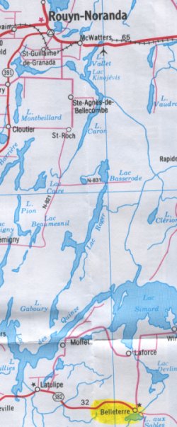 - Map showing the location of Belleterre south of Rouyn-Noranda - 29 May 2002.