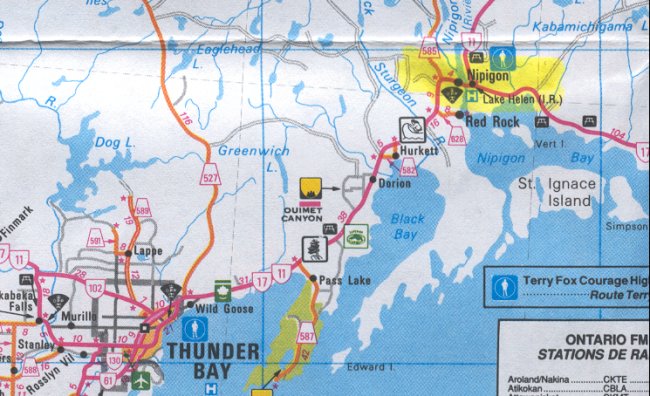 - Map showing the location of Nipigon northeast of Thunder Bay - 29 May 2002.