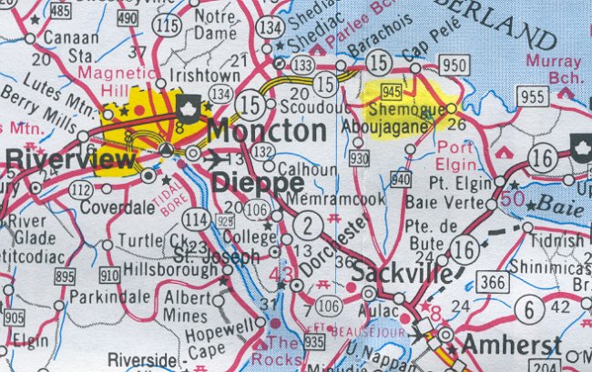 - Map showing the location of Shemogue east of Moncton - 29 May 2002.