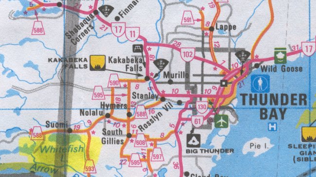 - Map showing the location of Whitefish Lake west southwest of Thunder Bay - 29 May 2002.