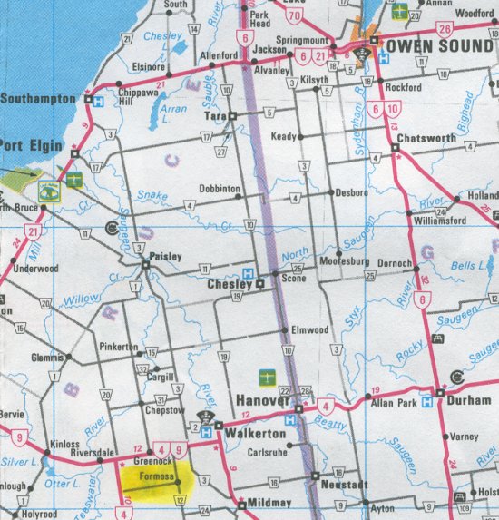 - Map showing the location of Formosa south southwest of Owen Sound - 29 May 2002.