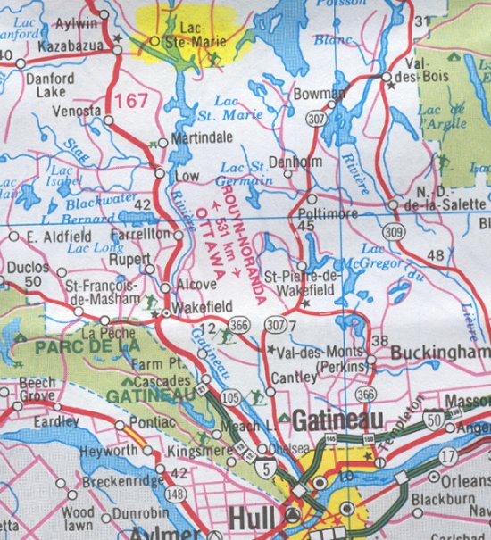- Map showing the location of Lac St. Marie north of Hull - 29 May 2002.
