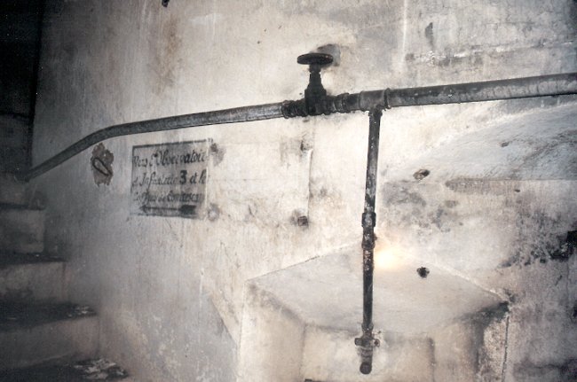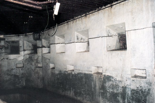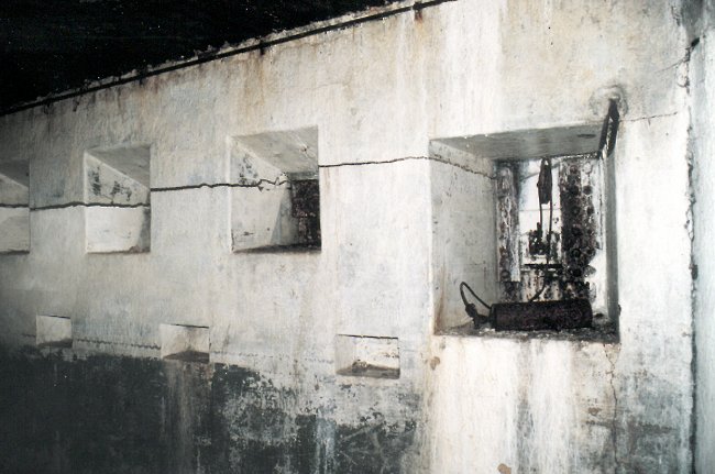 First floor of the caponniere of the caserne. Slit for searchlight on the right. Three slits for rifles with slots for rifle ammunition - 14 March 2001.