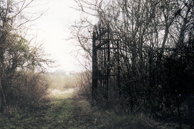 Remains of the fence. Chateau de Mercy in the distance - 14 March 2001.