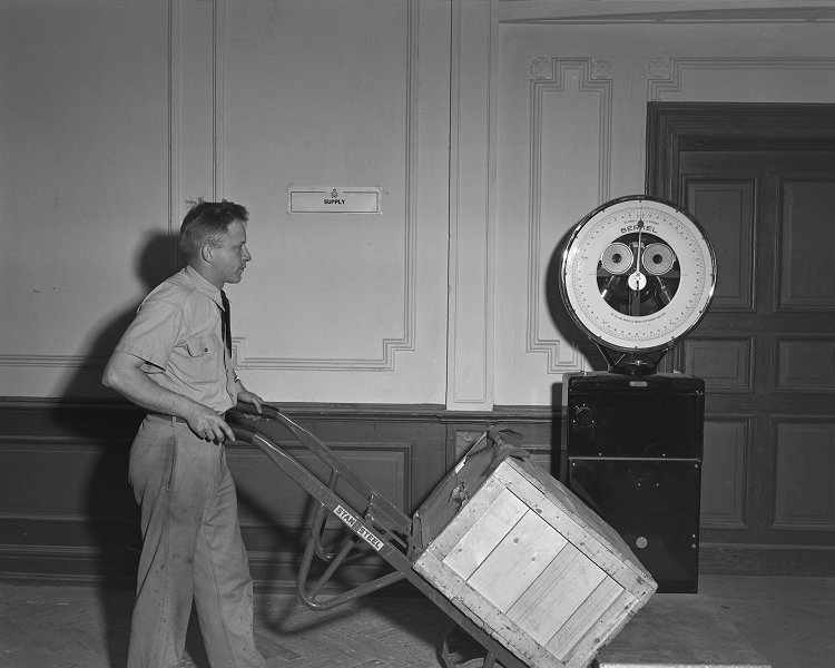 Cpl J Toews (Supply Tech) working in the temporary Supply section - 26 June 1953.