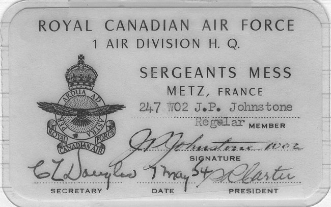 - Sergeant's Mess wallet size identification card - 7 May 1954.