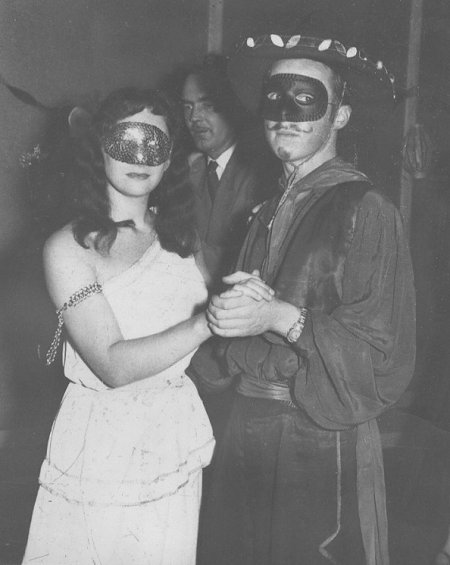- (L-R) Diane Johnstone and LAC Tommy Harris dressed up for a Sadie Hawkins Day dance - November 1954.
