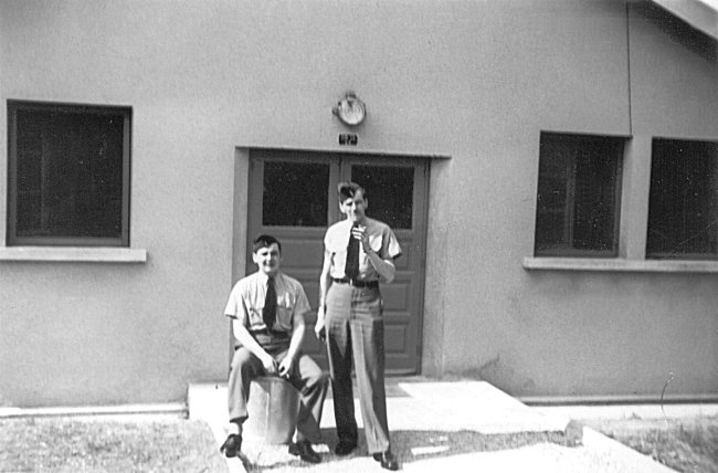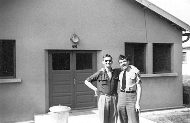 - (L-R) Reg and Skip McKimm outside of Reg's barracks - August 1954.