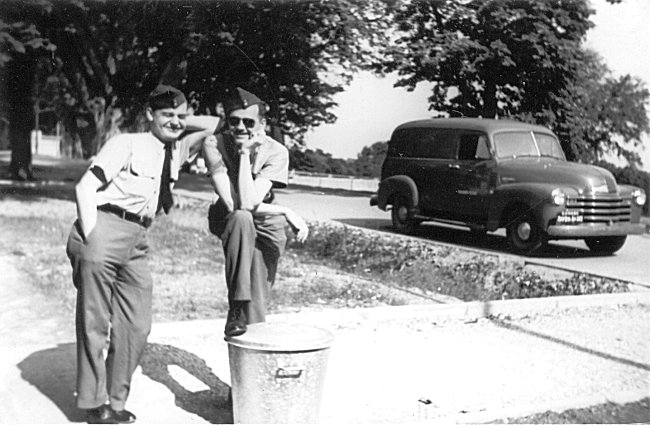 - (L-R) Kenny Dinner and Skip McKimm returning from the PX - May 1954.