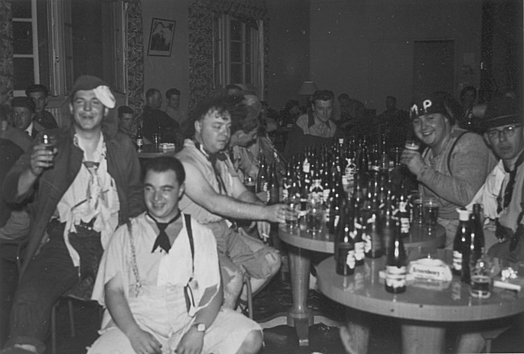 - Members of the Sgts Mess in front of the Chateau de Mercy - May 1954.