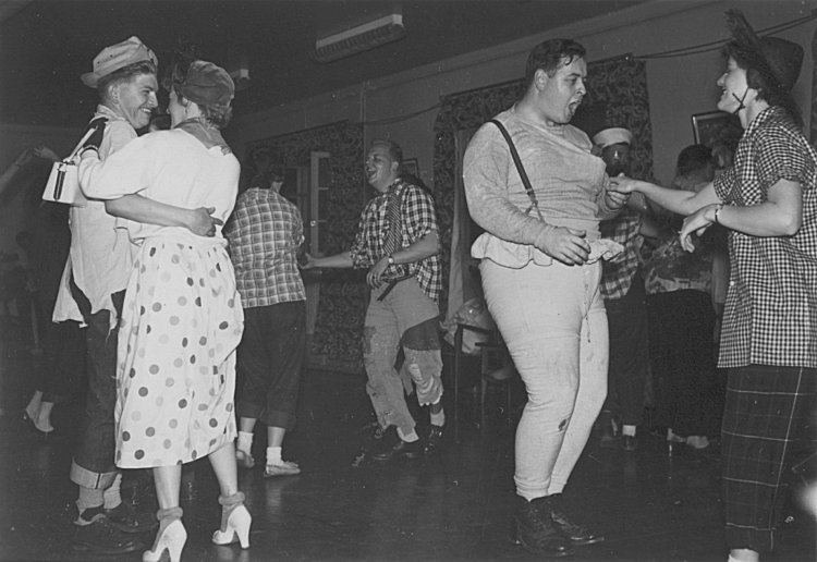 - Sadie Hawkins Day dance participants. (L-R) Carol Marx, LAC Tommy Harris, Rose Mary, Diane Johnstone, LAC Larry Hall - November 1954.