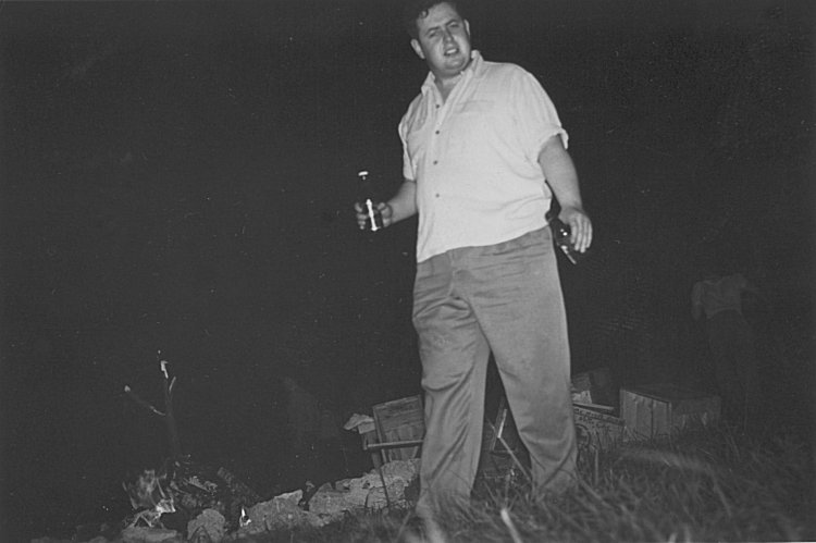 - (L-R) Skip McKimm and Pete Broda with his foot on the can - August 1954.