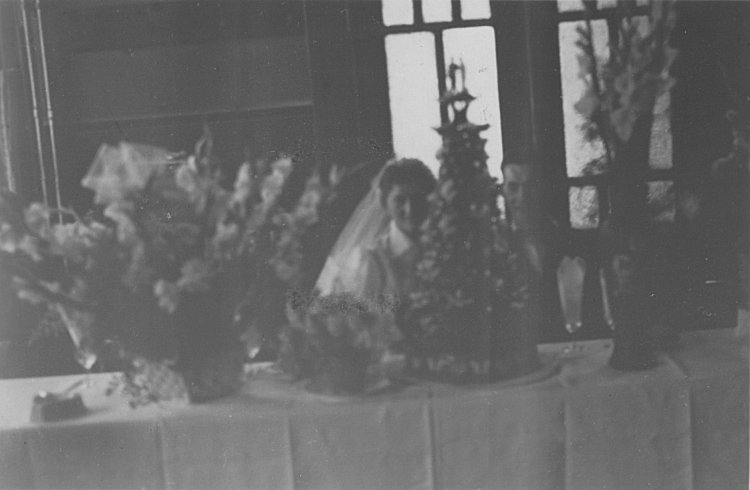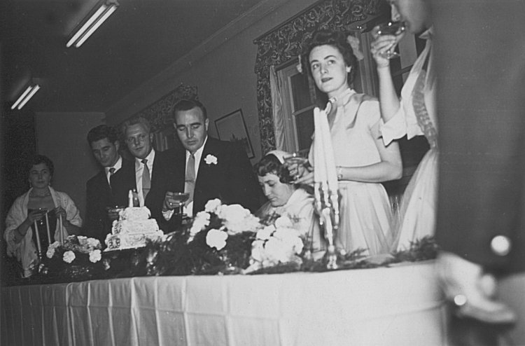 - Stretch MacDonald and his new wife, Collette, amidst the flowers and confection - September 1954.
