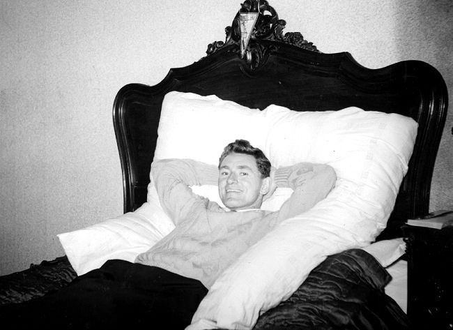 - Joe Milner relaxing on a "feather tick" in his apartment - July 1955.