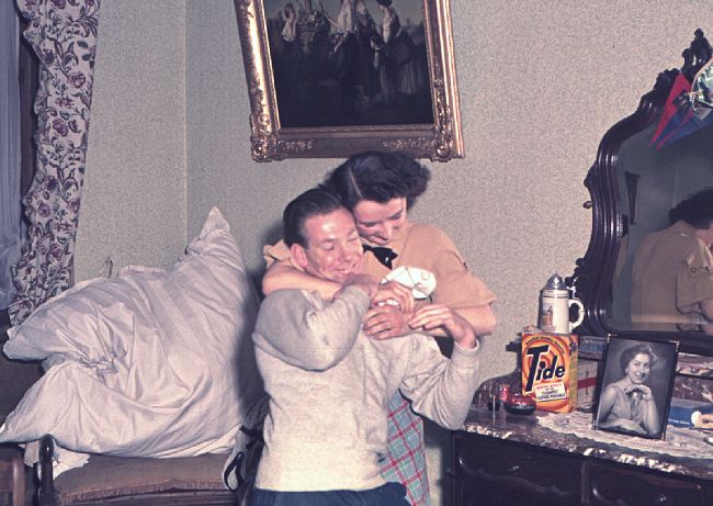 - Phil Elphik wrestles with the daughter of the woman who we rented our apartment from - July 1955.
