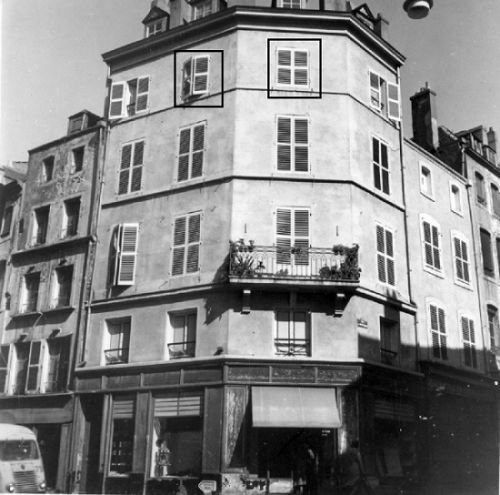 - 12 rue de Faison (our first living quarters). Outlined windows indicte my room - July 1955.