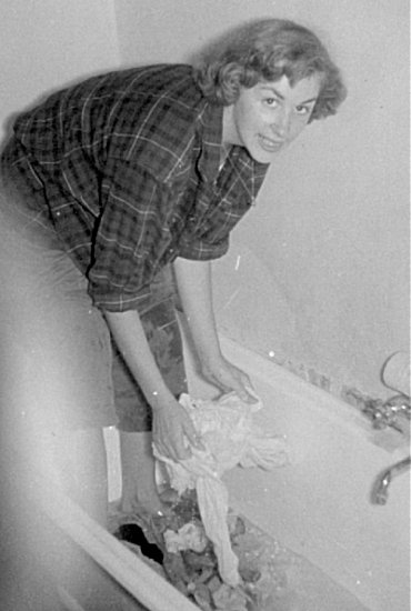 - Audrey Miles doing laundry in the only bathtub - August 1955.