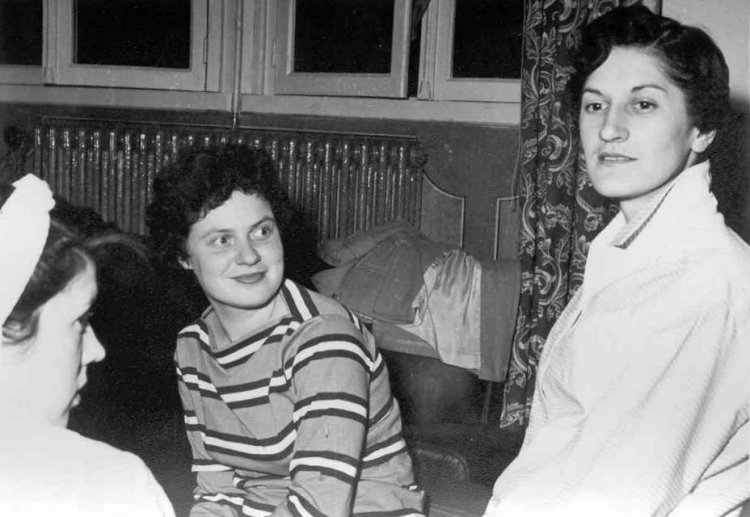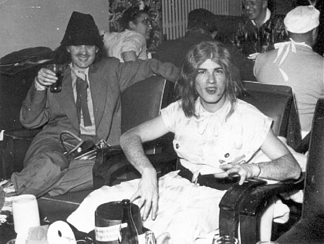 - (L-R) Calire Thibault, wife of photographer Dick Thibault and the future Mrs Stone, Cpl Terry Windich in the Cpls Club at promotion time - October 1955.