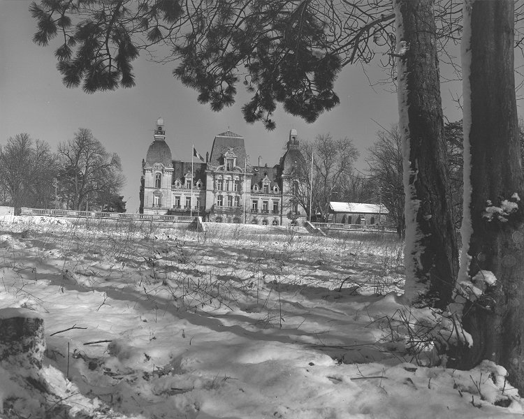 - View of the Chateau de Mercy after a light snow fall - 16 February 1955.