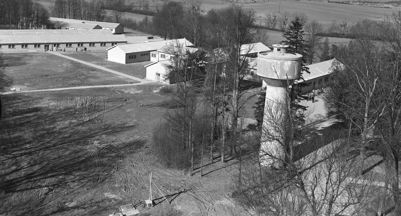 - Clustered in trees, the domestic site is ready for occupancy - March 1955.