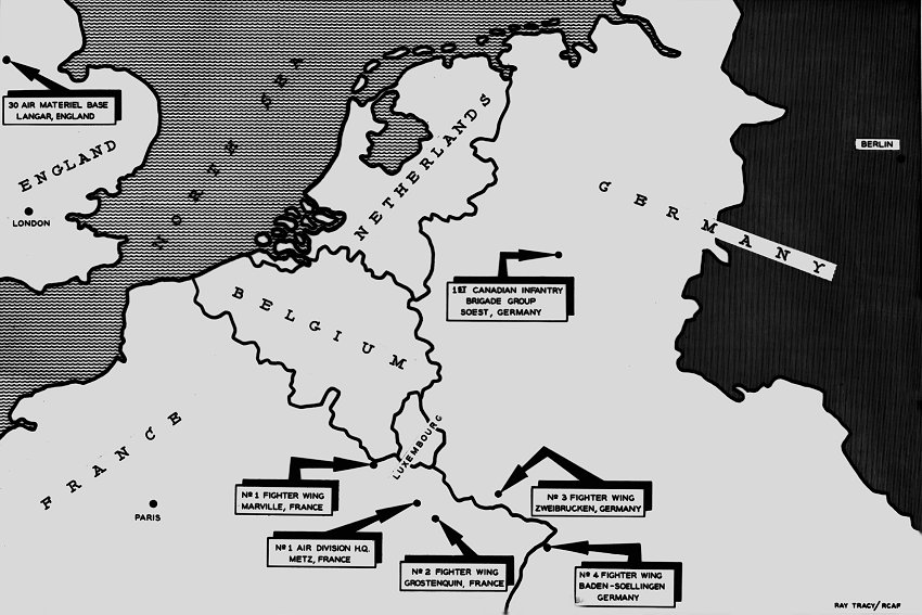 - Map showing the locations of Canadian military installations in Europe - 28 September 1955.