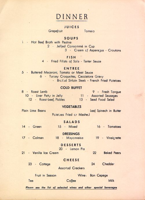 - SS Homeric Dinner Menu, page 3 of 3 - 14 May - 1955.