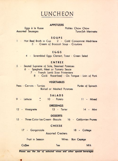 - SS Homeric Luncheon Menu, page 3 of 3 - 14 May 1955.