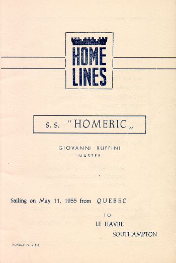 - SS Homeric Passenger List Booklet, Quebec City to Le Havre, France - 11 May 1955.