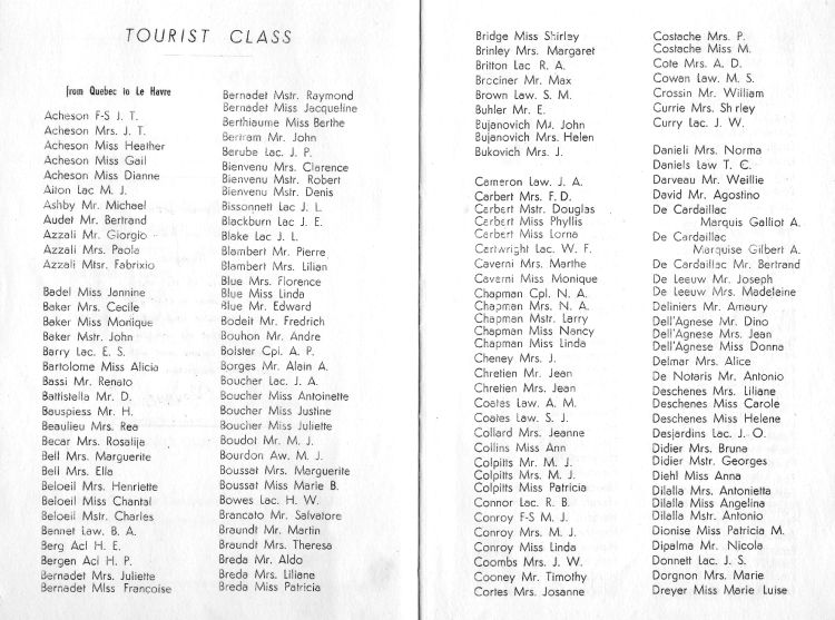 - SS Homeric Passenger List (A to D), Quebec City to Le Havre, France - 11 May 1955.