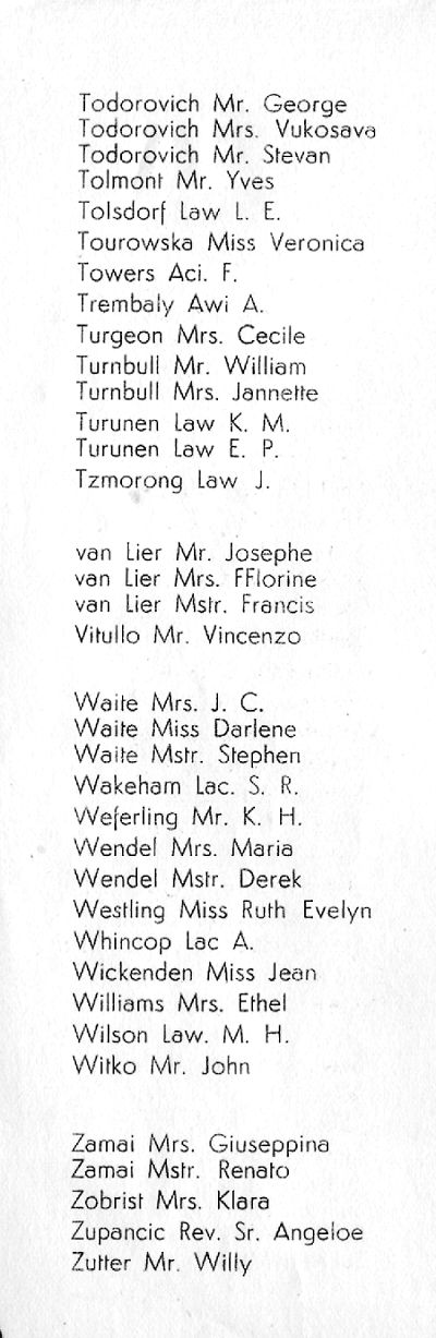- SS Homeric Passenger List (T to Z), Quebec City to Le Havre, France - 11 May 1955.