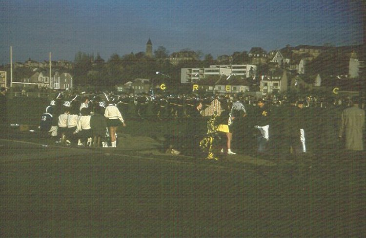 - Grey Cup Game. Pre-game festivities with assorted bands on the field - November 1961.