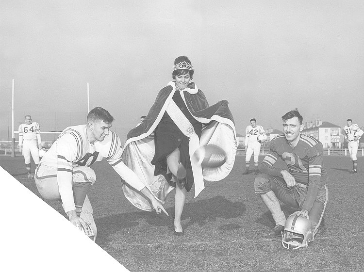 - Clare Bell, the Miss Grey Cup Queen, at the ceremonial kick-off - November 1961.