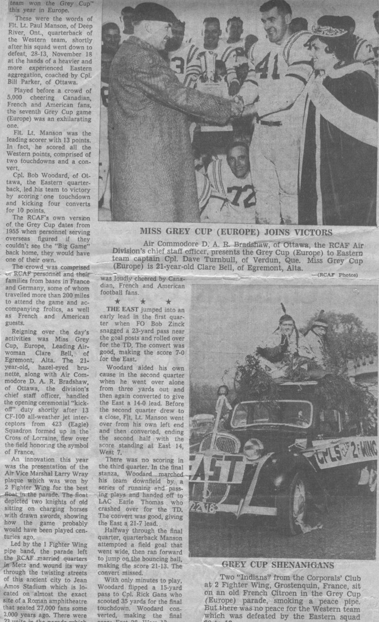 - Detail and Memories of the 1961 European Grey Cup Game - November 1961.