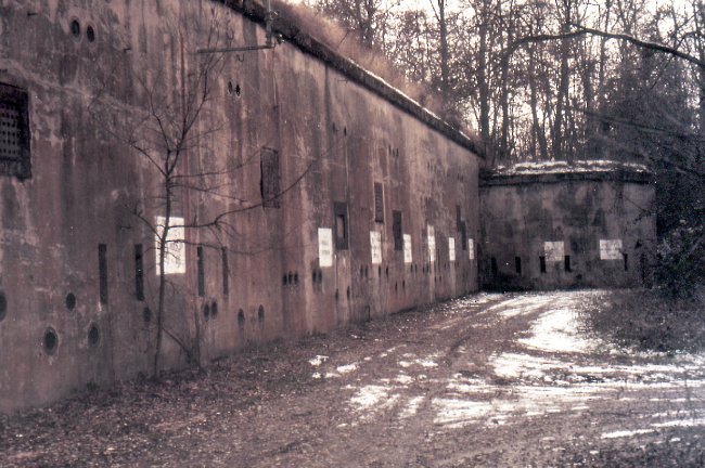 Main wall of the caserne d'Ars with RCAF parking allocation still visible - 1990.