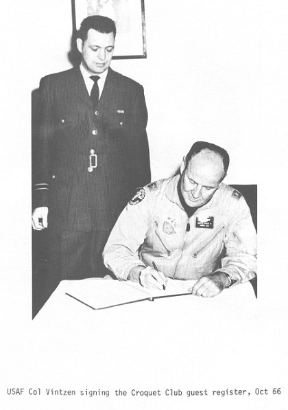 - USAF Col Vintzen signing the Croquet Club guest register - October 1966.