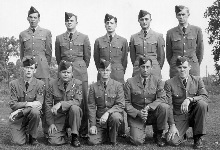Courtesy of Ron McShane Back row (L-R) - GD Morden, Cpl RW Stone, MJ Romanchuk, H Matus, TS Sokolowski. Front row (L-R) – ER Emberley, Cpl WE Routliffe, BE "Sam" Card, Cpl Cliff Allen, WC Inverarity.