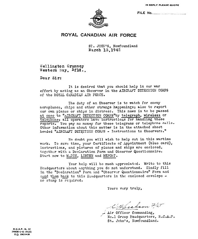 "The service operates - but not at the hours when it is most needed. In order that it be made effective, it will be necessary to post RCAF personnel at the most isolated points on the west side of the coastal islands to augment the civilian observers. It will be the job of those RCAF personnel to improve communications."