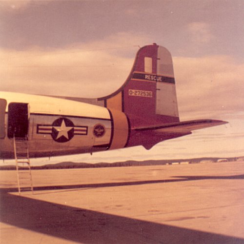 - View of the tail of a USAF Air Rescue aircraft on the ramp - June 1957.
