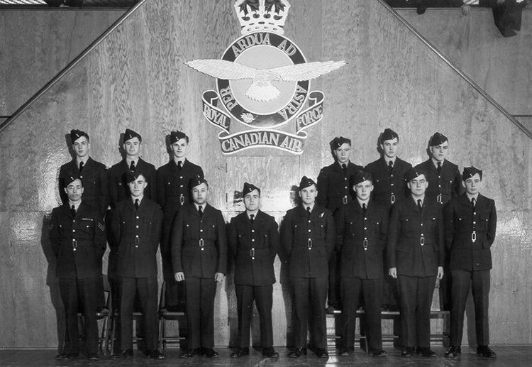 Courtesy of Ron Brennon & Ron McShane Back row (L-R) - JF Bernard, HF Dooley, WT Stenback, AM Hulley, CM Wright, JC LeRiche. Front row (L-R) – Sgt FJ Curzon, DW Thompson, JC Richardson, BJA Lesperance, WJ Horishney, R Farrier, A Szata, JJG Weir.![[RTG Course 5 (a)]](../../misc/radtech/rtg5a.jpg)