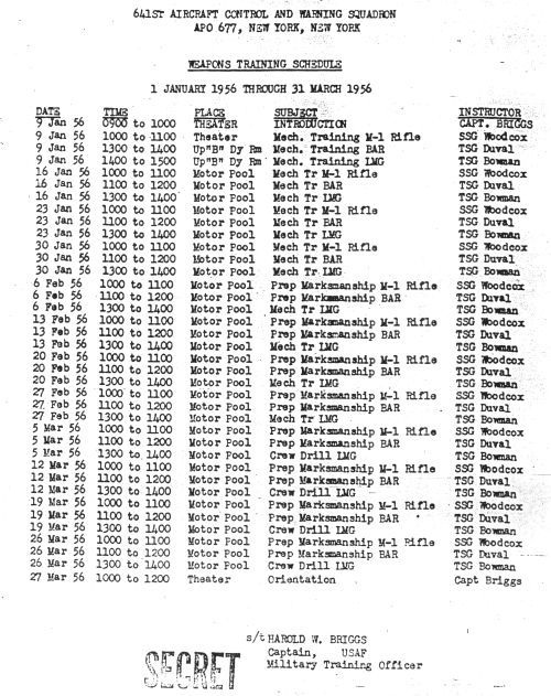 The job training program has been established for officers and airmen. The operations section of the squadron has established a five day course for the new personnel. The five days in the classroom permits the instructor to expose the students to a maximum amount of information that they will need for their jobs. The outline for the classroom period has been revised several times and is subject to further revision.