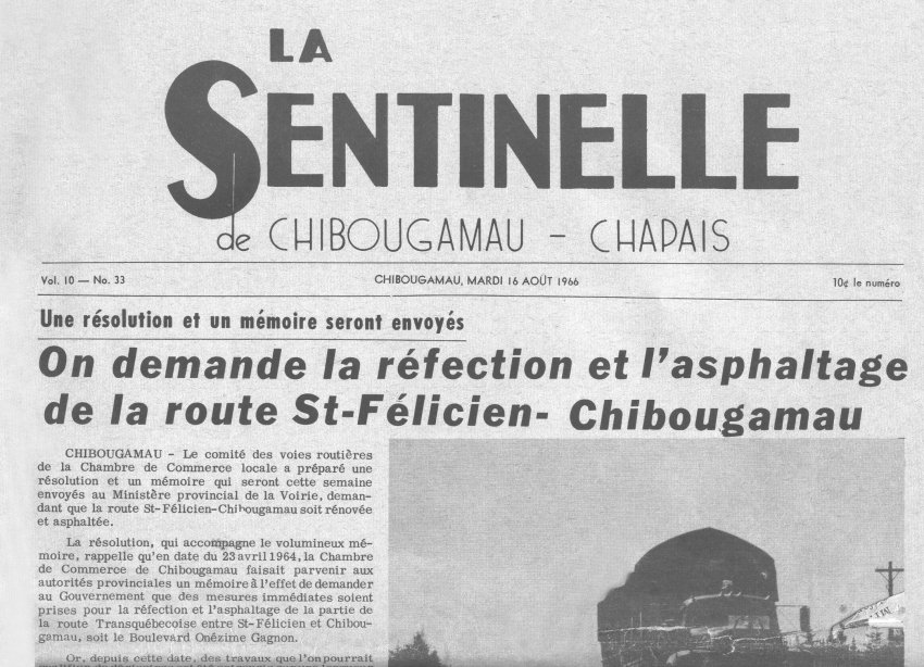 - Front page of La Sentinelle de Chibougamau - 16 August 1966.