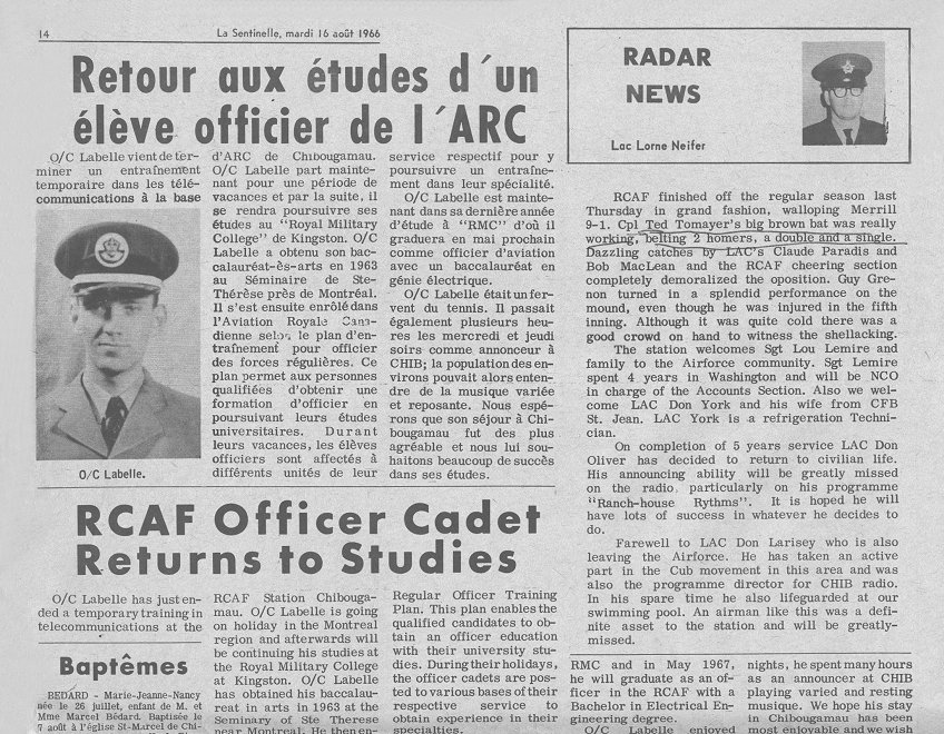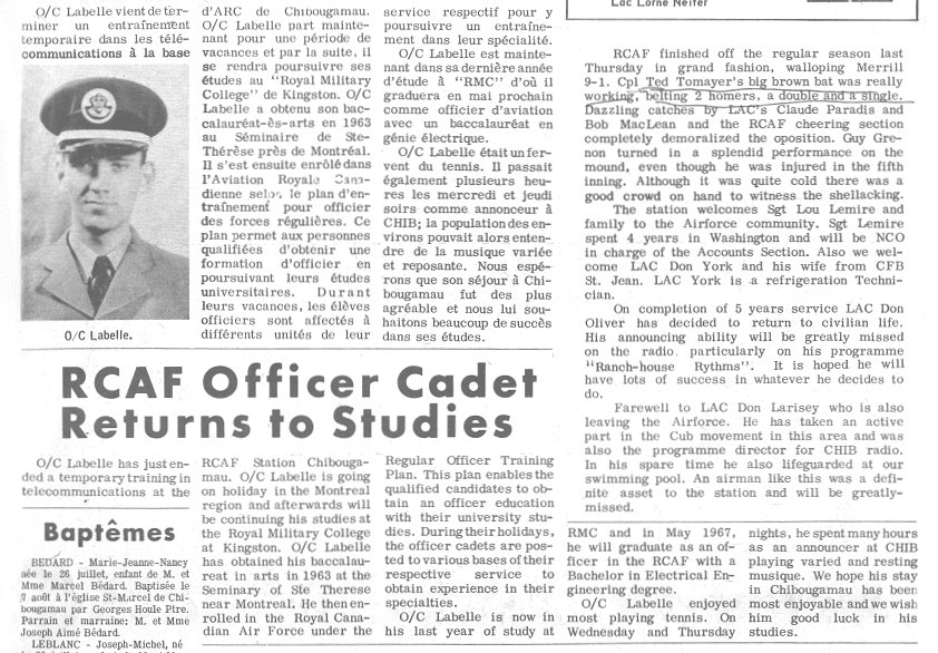 - RCAF Officer Cadet Returns to Studies, page 14 - 16 August 1966.