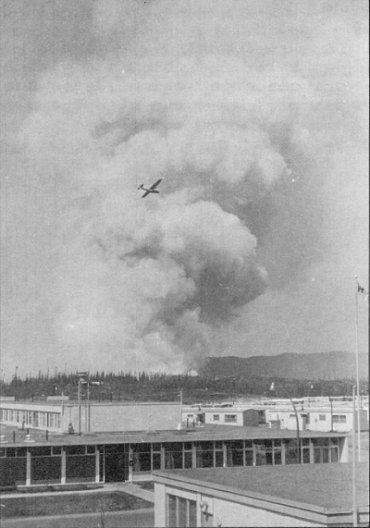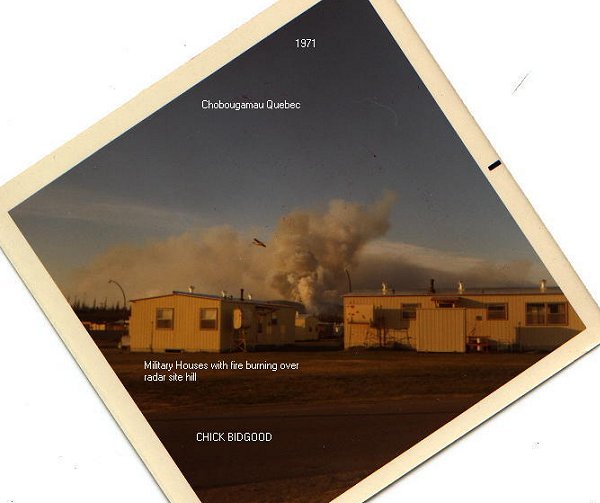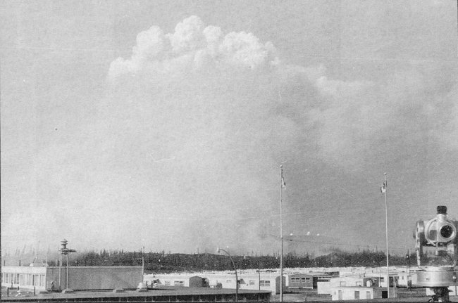 - Military houses with fire burning over the Operations site hill - 21 April 1971.