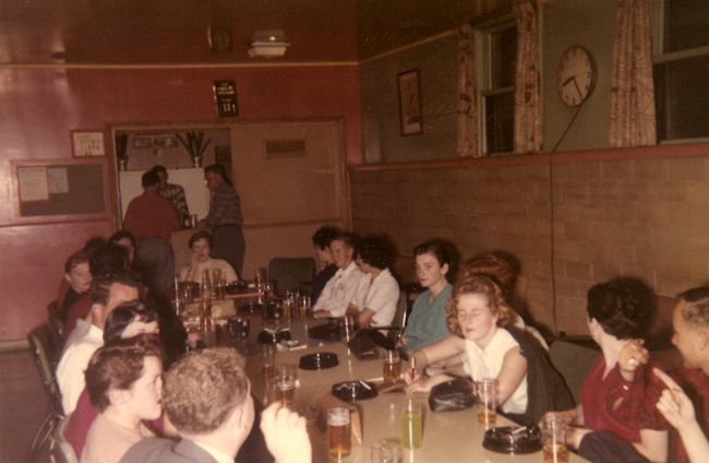 - Party in Airmen's Mess. Moe Morgan front right - October 1957.