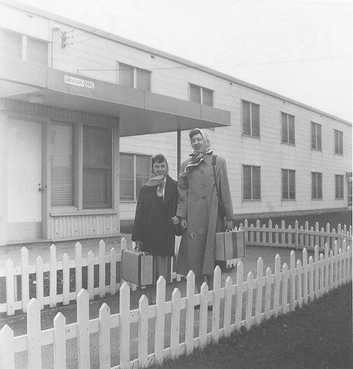 - (L-R) Vera and Gladys standing outside of the Officers barracks - October 1953.