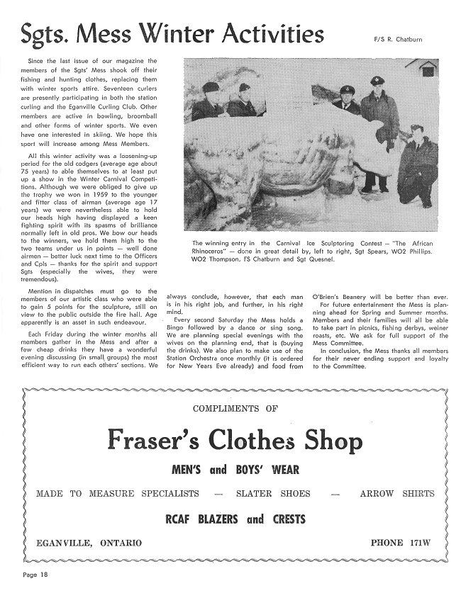 - Page 18 of "The Breeze" magazine. Sgts. Mess Winter Activities - March 1960.