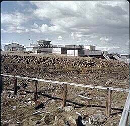 - Remains of radar tower (less radome) and other domestic site buildings in upper base- summer 1966.