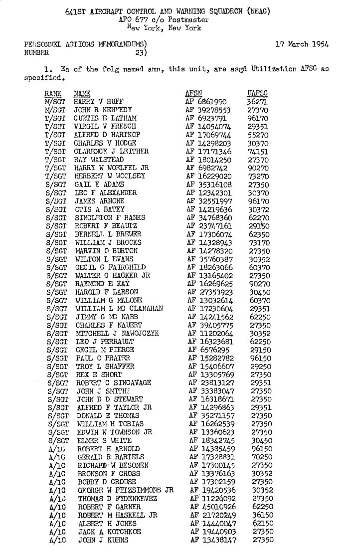 - Personnel Actions Memorandum 63 - 23 June 1954.