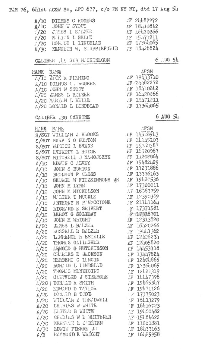 - Personnel Actions Memorandum 73 - 11 August 1954.